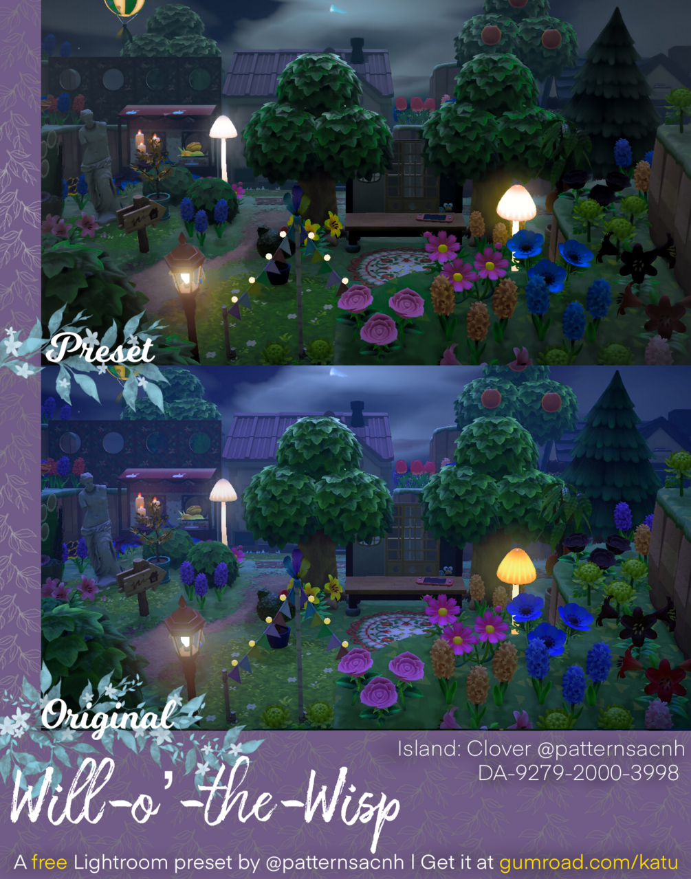 This preset is for nighttime shots which have light sources. It desaturated and deepens the shadows for a more realistic and feral appearance, and bright light sources are brought to the forefront and given an unearthly halo, for a charming yet eerie effect.